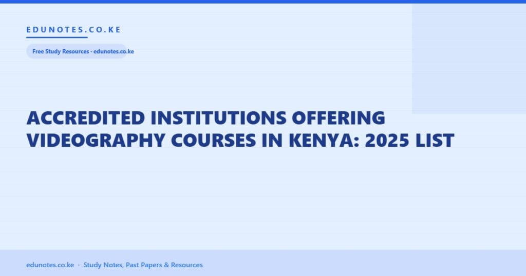 AFDA Kenya — African-linked film and television school. Premium fees but strong professional film connections. GreenHouse Studios — Nairobi-based production company that offers short courses alongside professional work. Various private media colleges in Nairobi — Confirm TVETA accreditation before enrolling. Private videography short courses (3–6 months) are widely available; confirm the specific certification offered and its employer recognition before paying fees.