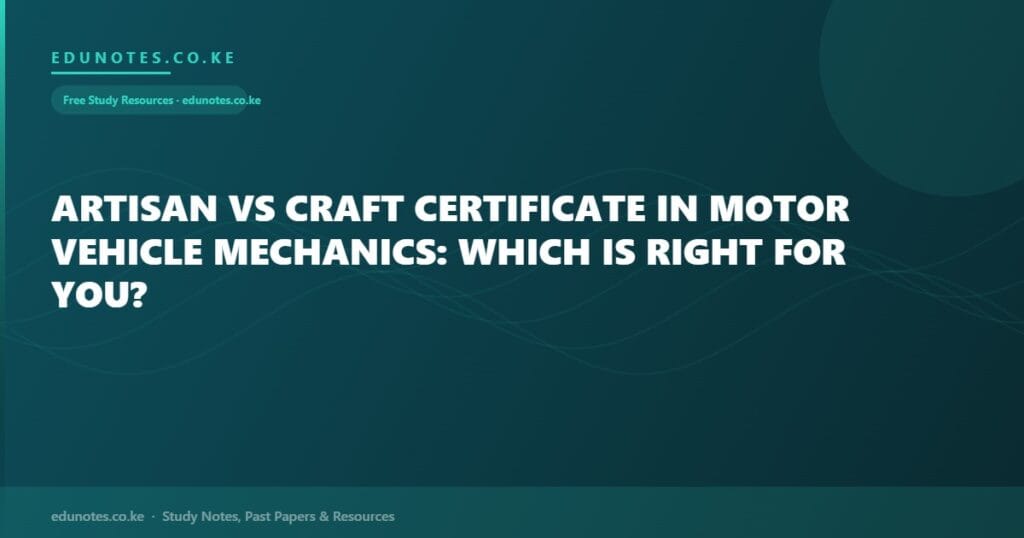 Motor vehicle mechanics is one of Kenya’s most consistently employed trades. With millions of vehicles on Kenyan roads and a growing commercial fleet, qualified mechanics are always in demand. Understanding which qualification level to pursue — Artisan or Craft Certificate — helps you make the most efficient training investment.