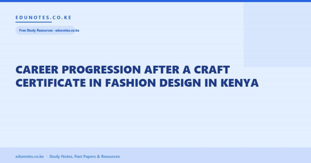 The most recommended career advancement step: enroll in a Diploma in Fashion and Design (2–3 additional years). Diploma level adds fashion management, advanced design, production planning, and business skills that open design management and supervisor roles at KSh 40,000–80,000/month. Evening diploma programs allow you to continue working while studying.