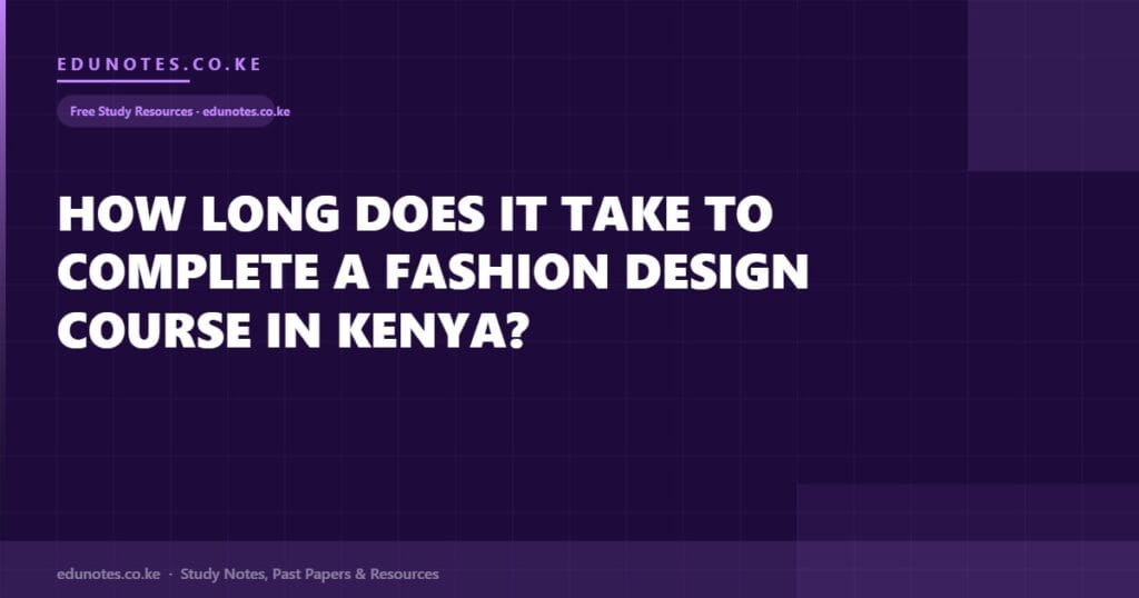 The Artisan Certificate in Garment Making or Fashion Design takes approximately 1 academic year (10 to 12 months) of full-time study. Content covers basic sewing machine operation, garment construction fundamentals, basic pattern use, fabric knowledge, and production of simple garments. At the end of the year, students sit KNEC examinations. This qualification is suitable for entry into basic tailoring and garment production employment.