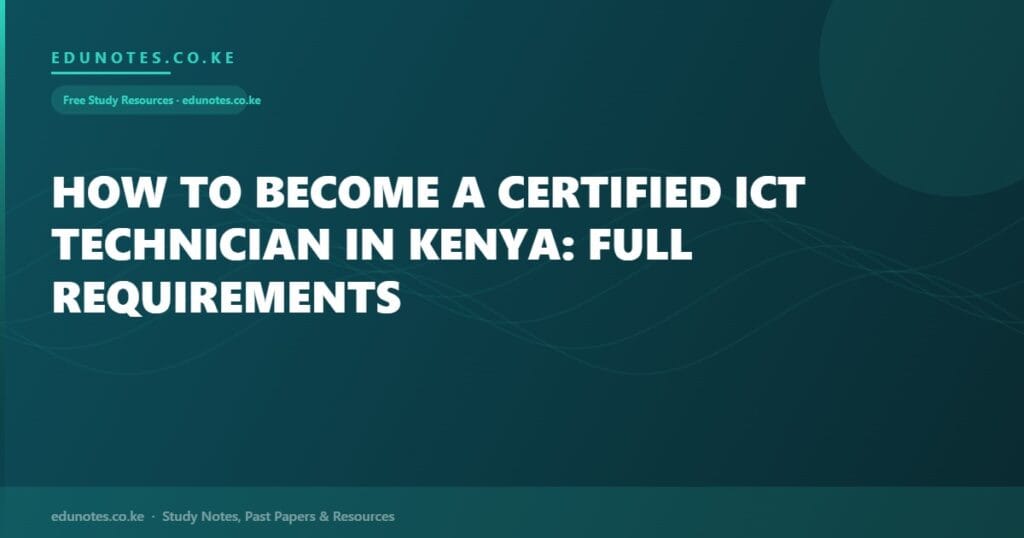 - Diploma in ICT — 2 to 3 years, KNEC-examined. Provides broader technical depth and opens access to higher-level positions.