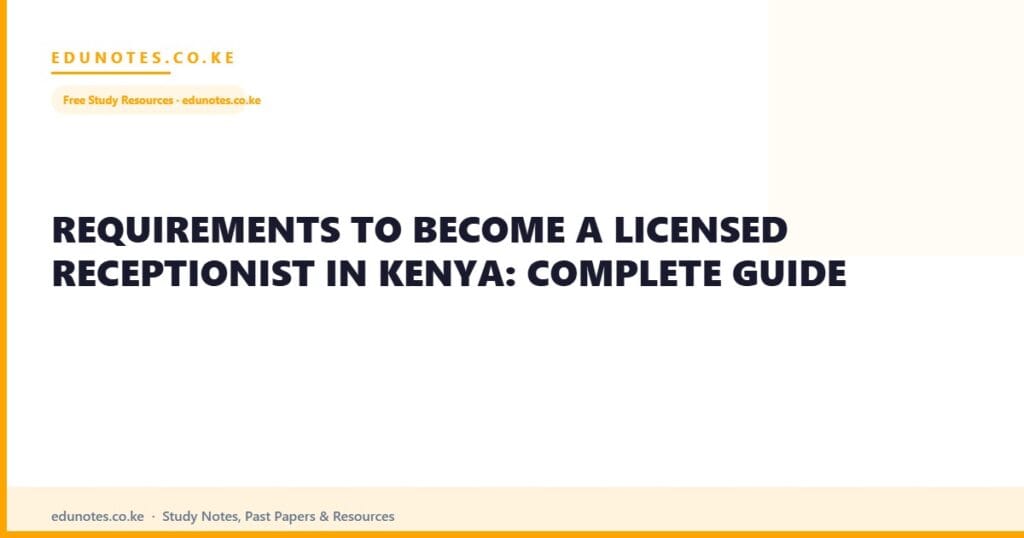 KNEC Craft Certificate in Secretarial Studies or Business Administration (2 years) — the standard qualification for formal receptionist positions. Customer service and front office short courses (1–3 months at private colleges) for rapid entry-level employment. Microsoft Office Specialist certification for premium employer positions. Computer literacy certificate (1–2 months) for candidates upgrading existing qualifications.